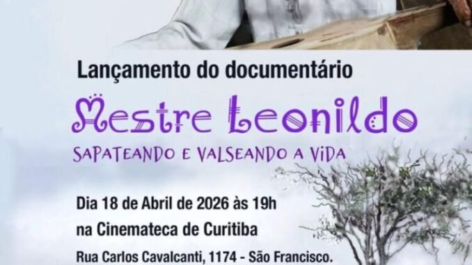 No mês que assinala o segundo aniversário de falecimento de uma das figuras mais emblemáticas do litoral paranaense, Curitiba recebe a estreia do documentário “Mestre Leonildo, sapateando e valseando a vida”. A exibição acontece no dia 18 de abril, às 19h, e homenageia a trajetória de Leonildo Pereira — luthier, músico, poeta e referência do fandango na região de Guaraqueçaba.
