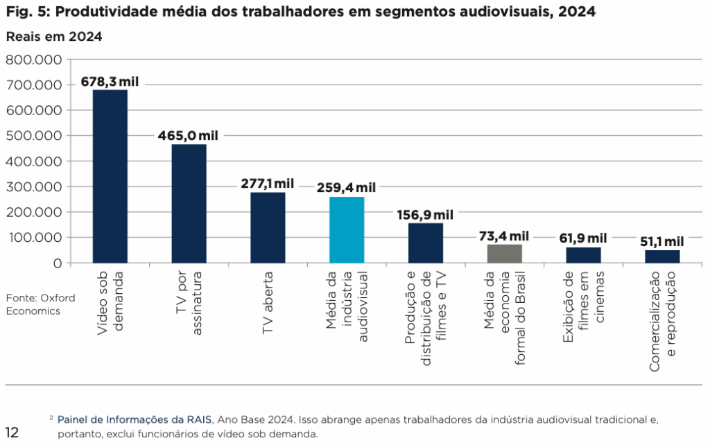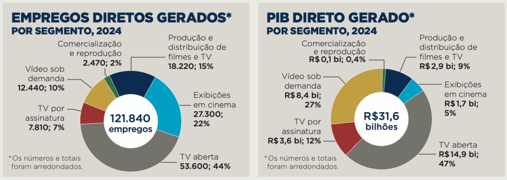 O estudo considera toda a cadeia produtiva, incluindo produção, distribuição, exibição cinematográfica, televisão aberta e por assinatura, além de streaming e vídeo sob demanda.