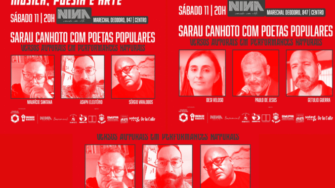 Getulio Guerra lançou ano passado a coletânea “Poemas de Guerra” (1991-2023), foi mentor do PrasBandas – Mostra Itinerante de Arte Curitibana (2005-2012) e do Sarau Popular (2014-2016), dois projetos descentralizados que instigaram artistas populares a se expressarem pelos bairros da cidade. Foi o curador do Sarau Poemas e Canções de Resistência (2018) no Acampamento Lula Livre e desse Sarau Canhoto com Poetas Populares.